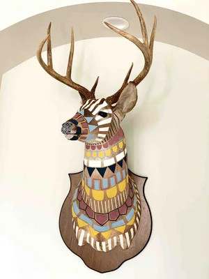 Custom Made Geometric Hand Painted Taxidermy Deer Cassandra Smith